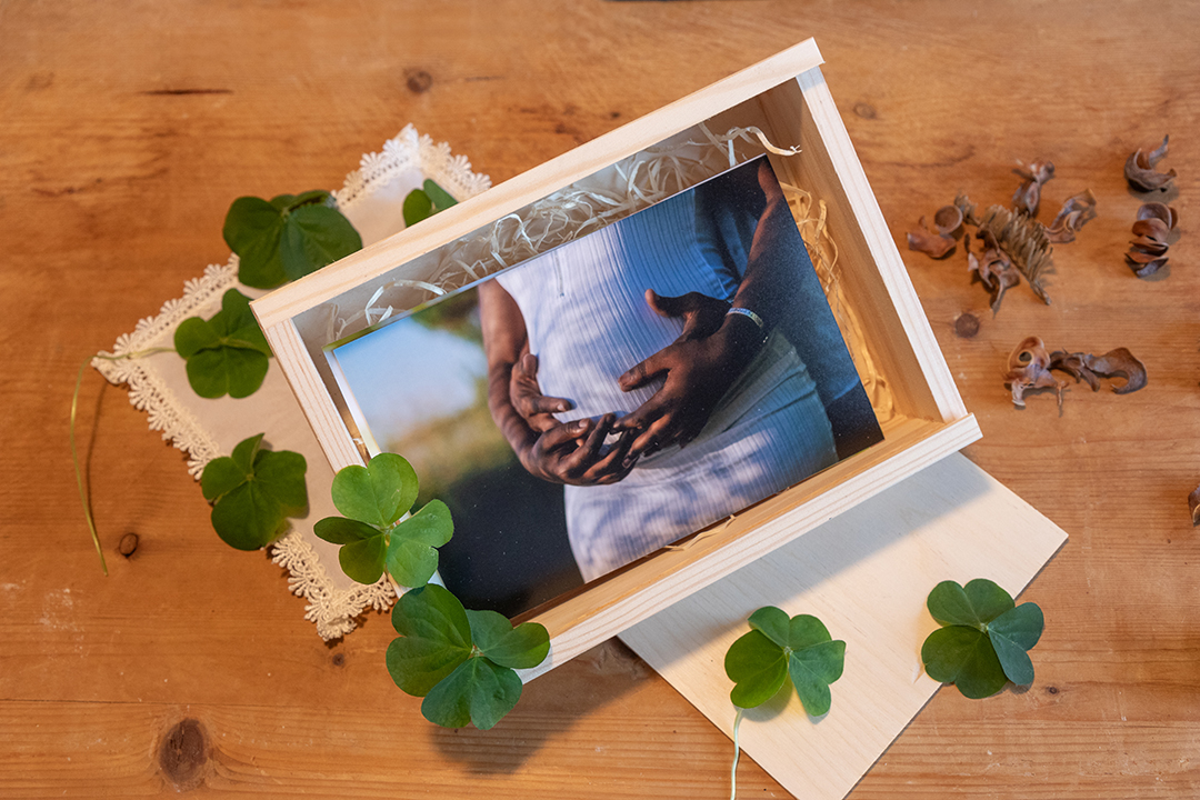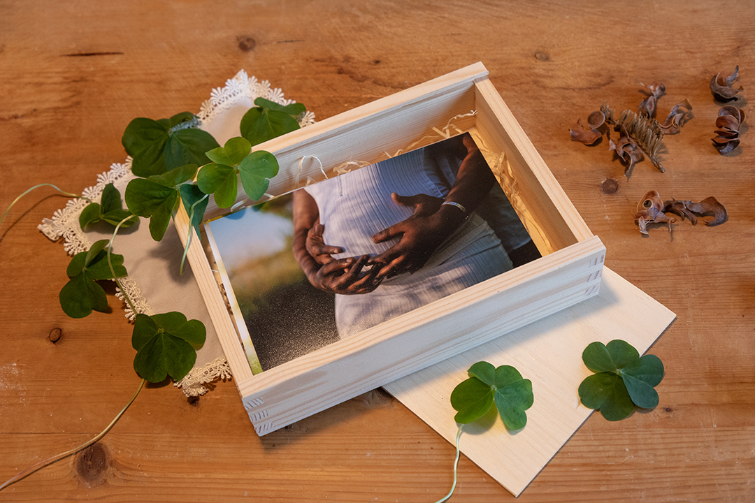 Confezione in legno per 15×20, tra i formati preferiti per newborn e baby photography, da personalizzare con incisione laser.